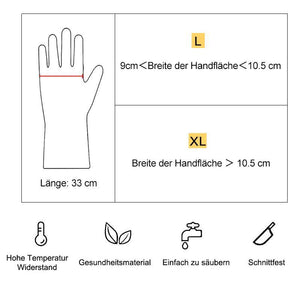 - Sicherheit - Diese unzerstörbaren Handschuhe sind für die Verwendung in Lebensmitteln zertifiziert und daher für den Umgang mit Lebensmitteln unbedenklich. Mit ihnen können Sie Brot backen, Obst und Gemüse waschen und andere Vorbereitungen treffen.
