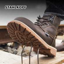 • ✔ Stahlkappe: Arbeitsschuhe mit Stahlkappen nach europäischem Standard, um große und schwere Stürze oder sich bewegende Gegenstände zu verhindern. Die Standard-Stahlkappe kann Kräfte von 200 ± 4 J und eine Kompression von 15000 N aufnehmen. Die pannensichere Stahlzwischensohle kann Kräfte aushalten > = 1200N