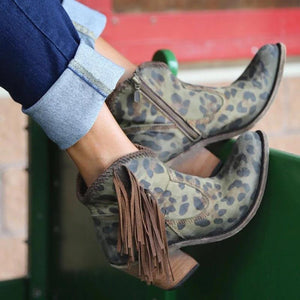 Leopardenmuster und Quaste, tragen Sie es mit Jeans und Windjacke, Sie sind der Trend der Straße.