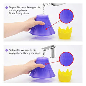 Fügen sie einfach wasser und essig bis die markierungen und ort in die mikrowelle für 5-8 minuten auf hohe wärme. Danach, sie müssen nur ein schwamm, lappen oder serviette und alle die dreck kommt direkt.