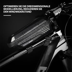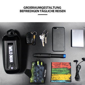- ✮ 【Riesige Kapazität & Kopfhörerloch-Design】Nach der Verbesserung verfügt die Fahrradtasche über größere Kapazität. Sonnenbrille, Powerbank, Handschuhe, Schlüsselbund, Portemonnaie, Reparatur Set, usw. können Sie einfach in diese Rahmentasche legen. Besonders für die Kopfhörer ist ein kleiner Ausgang in dieser Oberrohrtasche eingearbeitet, wodurch Sie Musik beim Radfahren genießen können.