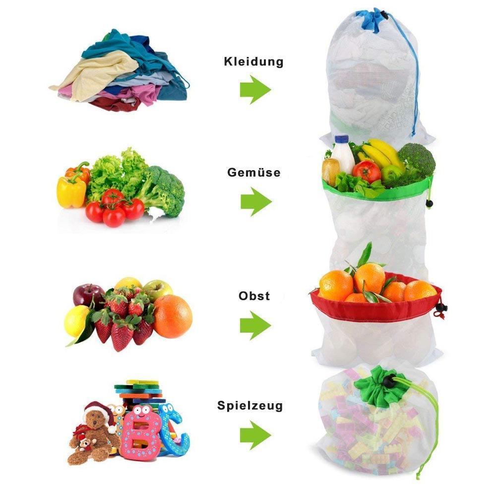 - Atmungsaktiv: Atmungsaktives Mesh-Design ist besser und mehr umweltfreundlich als die normalen Plastiktaschen. Feinmaschiges Design ermöglicht einen Luftstrom, anstatt in den Plastiktüten zu schwitzen. Die Atmungsaktivität verhindert die Kondensation im Kühlschrank und sorgt dafür, dass Obst und Gemüse länger frisch bleiben!
